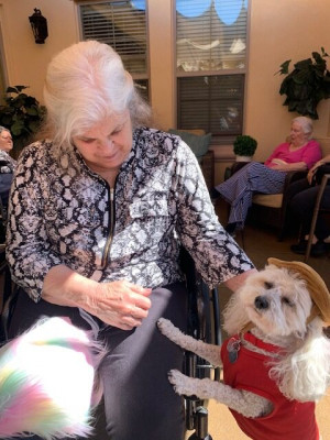“Thank you again for introducing us to your brain games and your service dog, Angel! The residents really enjoy your visits!”